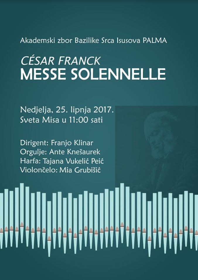 AZBSI Palma svoju zborsku sezonu tradicionalno završava blagdanom svetih Petra i Pavla 29. lipnja. Na dvanaestu nedjelju kroz godinu i posljednju nedjelju prije ljetnog odmora, Palma će zaokružiti svoju sezonu izvedbom koncertne Messe Solennelle francuskog skladatelja Cesara Francka. Pridružite nam se u nedjelju na svetoj misi u 11 sati u našoj Bazilici i uživajte zajedno s nama.