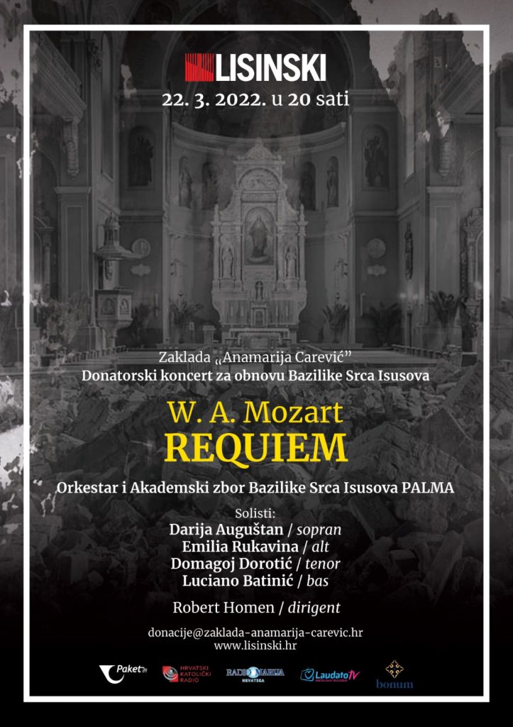 Na samu godišnjicu potresa, 22. ožujka 2022. godine u 20 h, u velikoj dvorani Lisinski sprema se spektakl – Requiem (misa za mrtve) velikog W. A. Mozarta. Sav prihod od ulaznica namijenjen je obnovi Bazilike Srca Isusova.